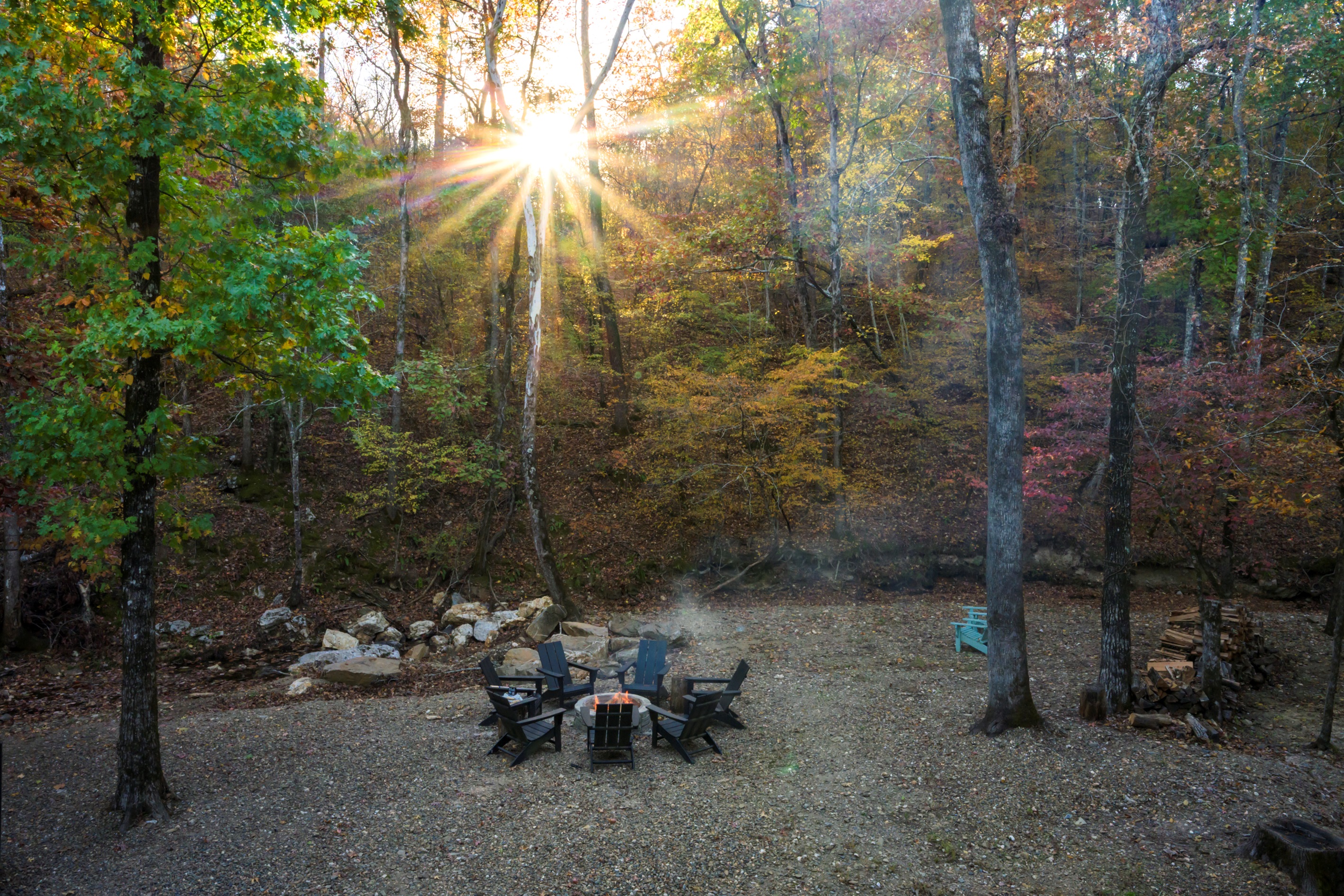 Please note that this is a forested area and there are times when the Oklahoma Forestry Service enforces a burning ban in the area. Fines can be upwards of $1000. Please check online for the current burn ban status before using the outdoor firepit.