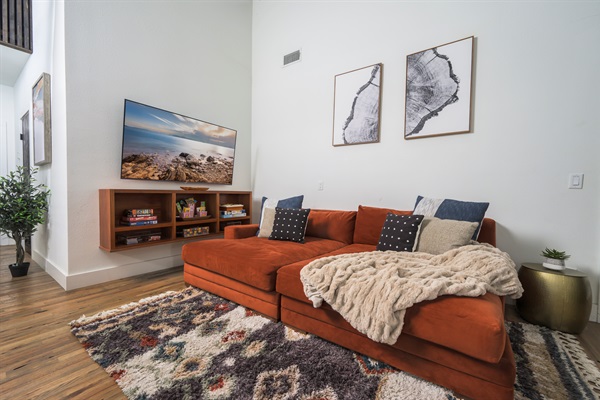 Open, airy, and inviting—this living space blends bold design with warm cabin comfort